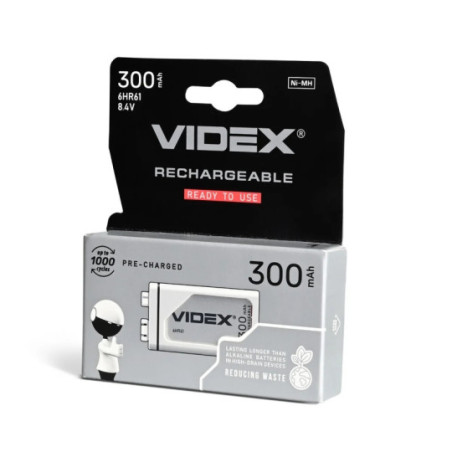 Akumulatory niklowo-wodorkowe (Ni-MH) VIDEX to wysokiej jakości źródło zasilania o długiej żywotności. Akumulatory tego typu są stosowane w przenośnych urządzeniach elektrycznych i narzędziach. Do zalet tego typu akumulatorów należy szybkie ładowanie i długa żywotność. Oznaczenie "READY FOR USE" na opakowaniu wskazuje, że bateria jest gotowa do pracy natychmiast po rozpakowaniu. Brak takiego oznaczenia oznacza, że akumulator należy naładować przed użyciem. Odpowiedni do wszystkich rodzajów obciążeń.