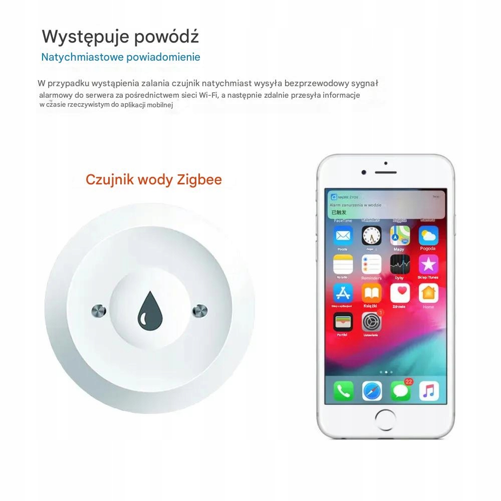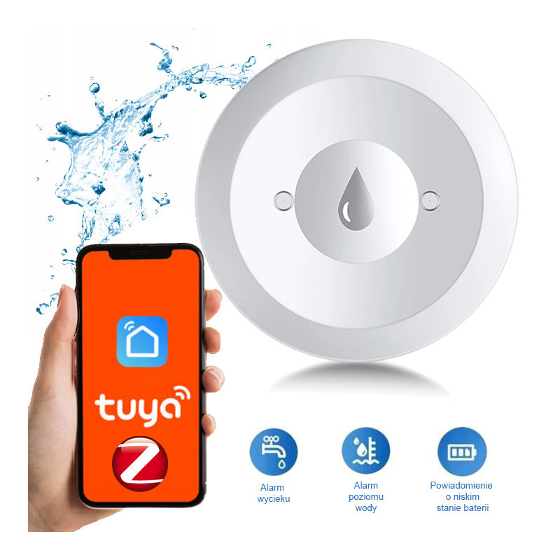 ✅ Natychmiastowe powiadomienia • ✅ Technologia Zigbee • ✅ Współpraca z Tuya Smart Life • ✅ Ochrona przed zalaniem 24/7
