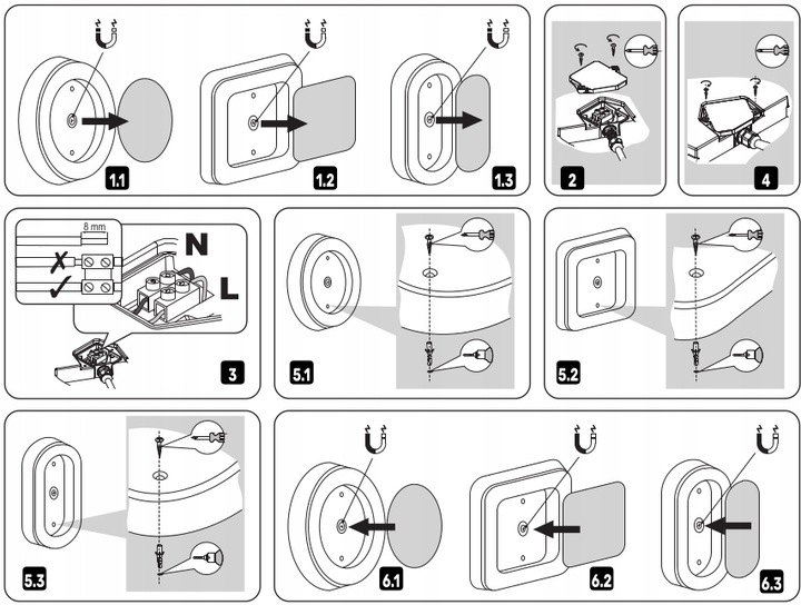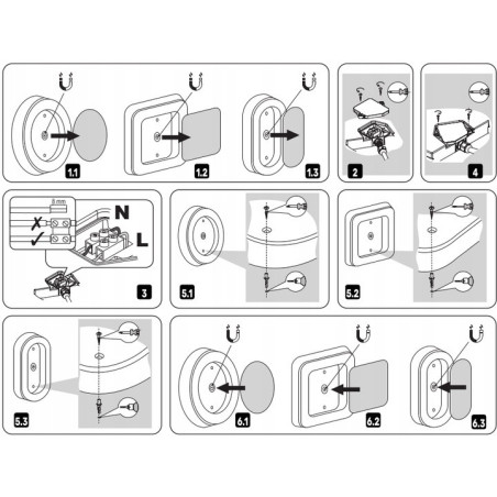 • Miejsce instalacji: Sufit, Płaska powierzchnia, Ściana