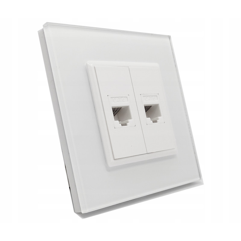 Prezentujemy najwyższej jakości gniazdko z podwójnym wejściem LAN RJ45, szklane z panelem ze szkła hartowanego.