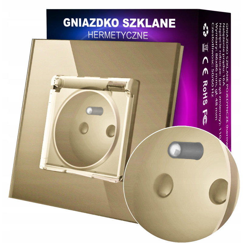Prezentujemy najwyższej jakości hermetyczne szklane gniazdko z klapką z panelem ze szkła hartowanego o grubości 4mm, uziemieniem oraz zabezpieczeniem torów prądowych przed dostępem dzieci.
