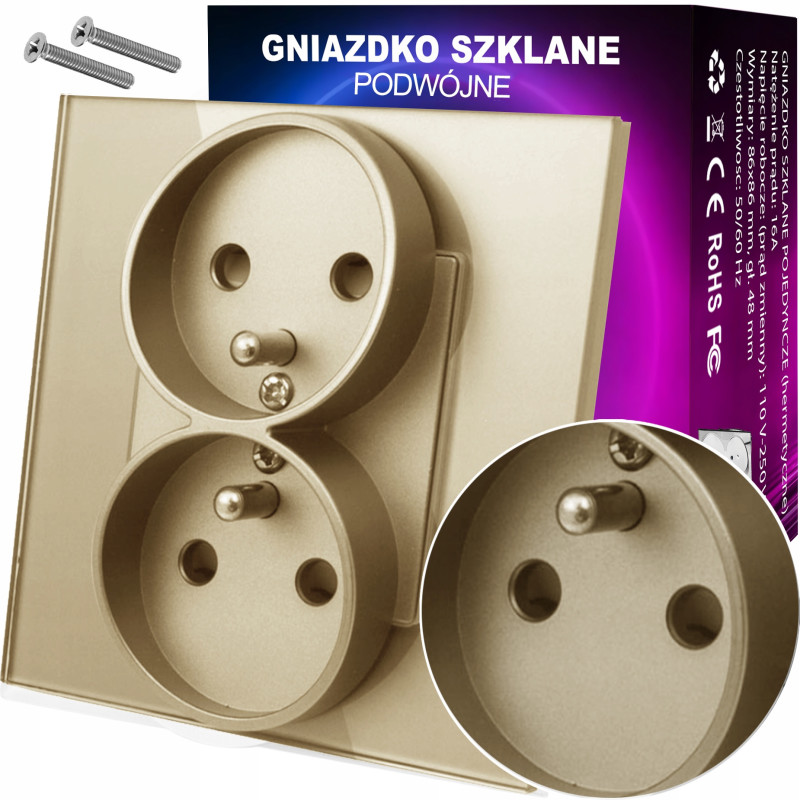 ✅ Przedstawiamy podwójne gniazdko szklane w eleganckim, złotym wykończeniu, które jest idealnym połączeniem nowoczesnego designu i funkcjonalności.