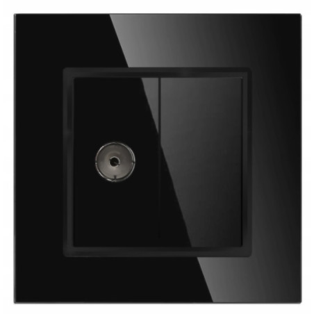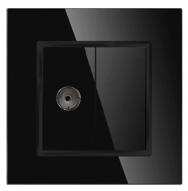 Nowoczesne i stylowe pojedyncze gniazdo antenowe TV z żeńskim wejściem (gniazdo IEC) w eleganckiej, czarnej szklanej ramce to połączenie funkcjonalności z wyjątkowym designem. Przeznaczone do montażu w instalacjach RTV, zapewnia stabilne i bezstratne połączenie sygnału antenowego.
