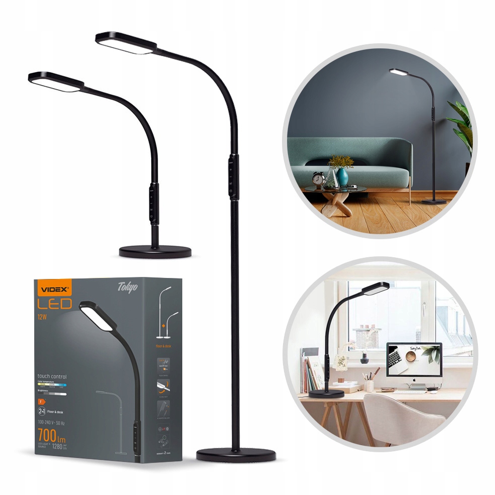 VIDEX TF07 TOKYO to lampa podłogowa LED z funkcją ściemniania i zmiany temperatury barwowej. Model ten zawiera wydajne źródło światła, które z nawiązką wystarczy do wielu zadań. Elastyczna górna część obudowy lampy pozwala łatwo skierować światło na pożądany obszar.