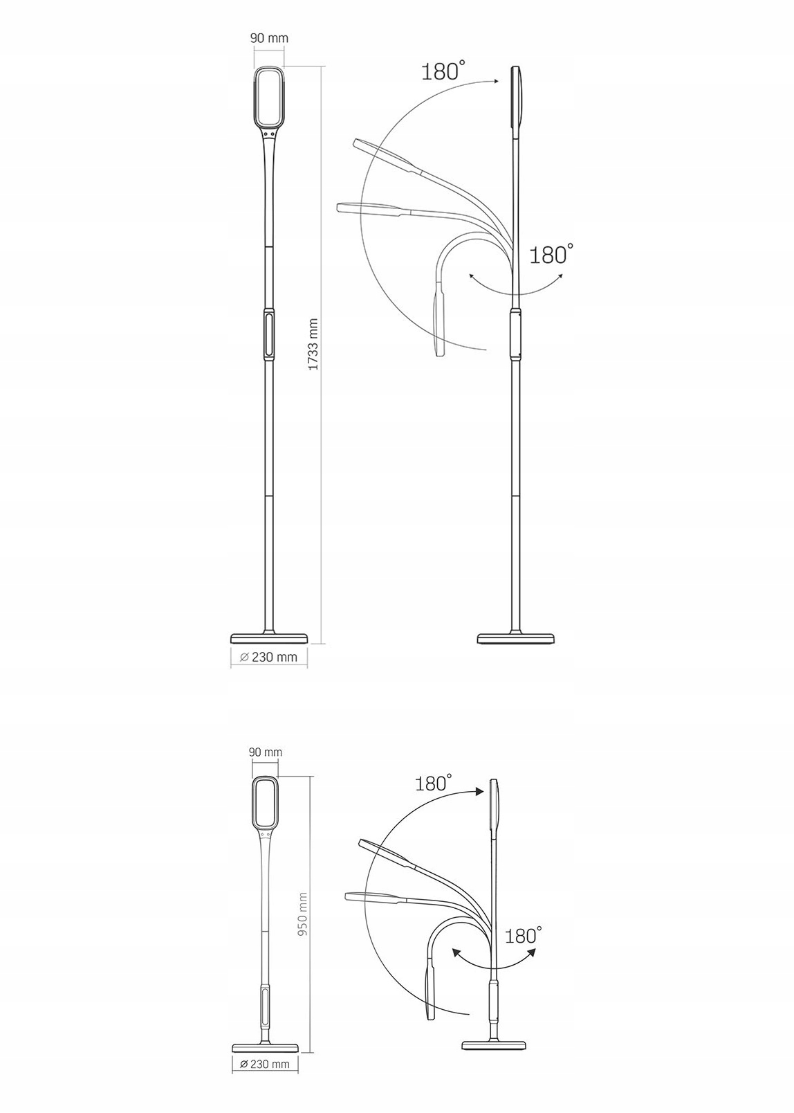 Dzięki składanej konstrukcji lampę podłogową można przekształcić w lampę stołową.