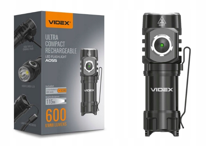 Przenośna latarka LED VIDEX A055 (600Lm, 5700K) została zaprojektowana z myślą o indywidualnym użytku nocnym lub w miejscach pozbawionych oświetlenia. Jej kluczowe cechy to solidność, niezawodna obudowa oraz szeroki zasięg światła. Latarka umożliwia łatwy wybór preferowanego trybu pracy, a jej maksymalna jasność wynosi 600Lm. Wykorzystuje diodę LED Luminus SST20, co poprawia efektywność konwersji fotoelektrycznej, przy jednoczesnym zapewnieniu wysokiej niezawodności i doskonałych wyników.Krótkie naciśnięcie przycisku ON/OFF pozwala na włączenie lampy i przemieszczanie się między trybami pracy, natomiast długie naciśnięcie przycisku powoduje wyłączenie latarki. Latarka VIDEX A055 to praktyczne narzędzie do oświetlania obszarów w warunkach ograniczonego oświetlenia.