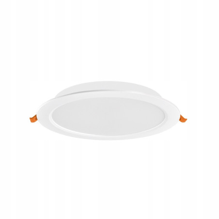 Nowa generacja opraw wpuszczanych typu downlight. Lekka i wydajna.\nDiody LED są umieszczone z tyłu oprawy. Płytka LED przesunęła się z boku na tył, dzięki czemu stał się bardziej energooszczędny. Zasilacz jest zintegrowany z modułem źródła światła, dzięki czemu nie wymaga dodatkowej przestrzeni montażowej. Grubość lampy 27mm zwiększa różnorodność jej powierzchni montażowej. Dzięki szerokim krawędziom wielkość otworu montażowego może się różnić w granicach około 1 centymetra.\nZewnętrzna powłoka wykonana jest w 100% z ognioodpornego tworzywa sztucznego, nadal wytrzymałego i zapobiegającego pękaniu. Miejsce dyfuzyjne wykonane jest z materiału zapobiegającego żółknięciu o doskonałym efekcie prześwitującym.\nBrak wyczuwalnego migotania światła, wygodnego dla ludzkiego oka, nie powoduje podrażnień przy długim czasie pracy. Kilka mocy w ramach jednej serii pomoże oświetlić różne pomieszczenia w domu lub podzielić jedno pomieszczenie na różne strefy oświetleniowe.