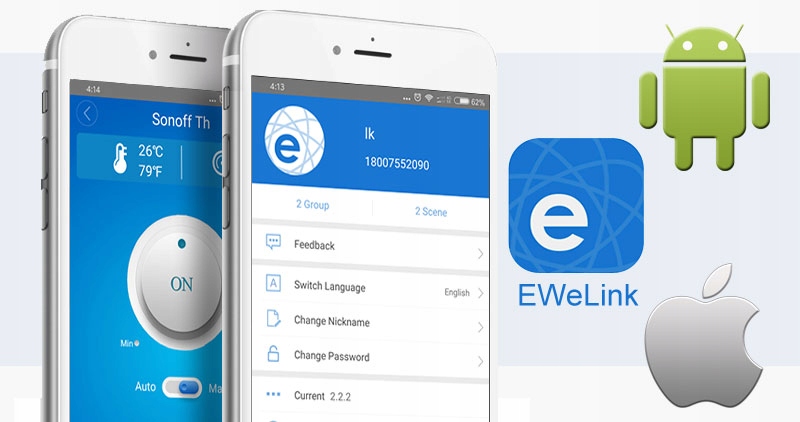 Włącznik posiada opcję sterowania przez aplikację Ewelink, dostępną dla systemu Android, iOS bądź Amazon Alexa.