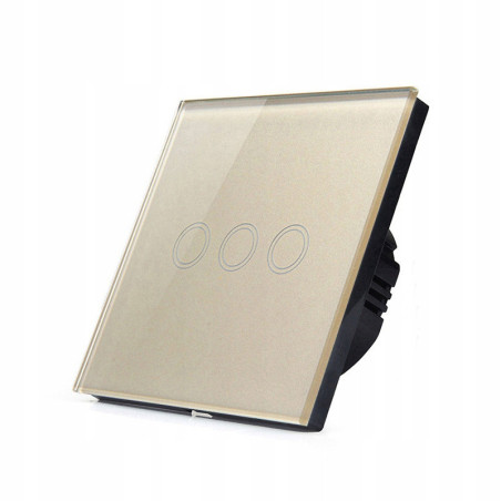 DOTYKOWY SZKLANY WŁĄCZNIK ŚWIATŁA POTRÓJNY ZŁOTY LED