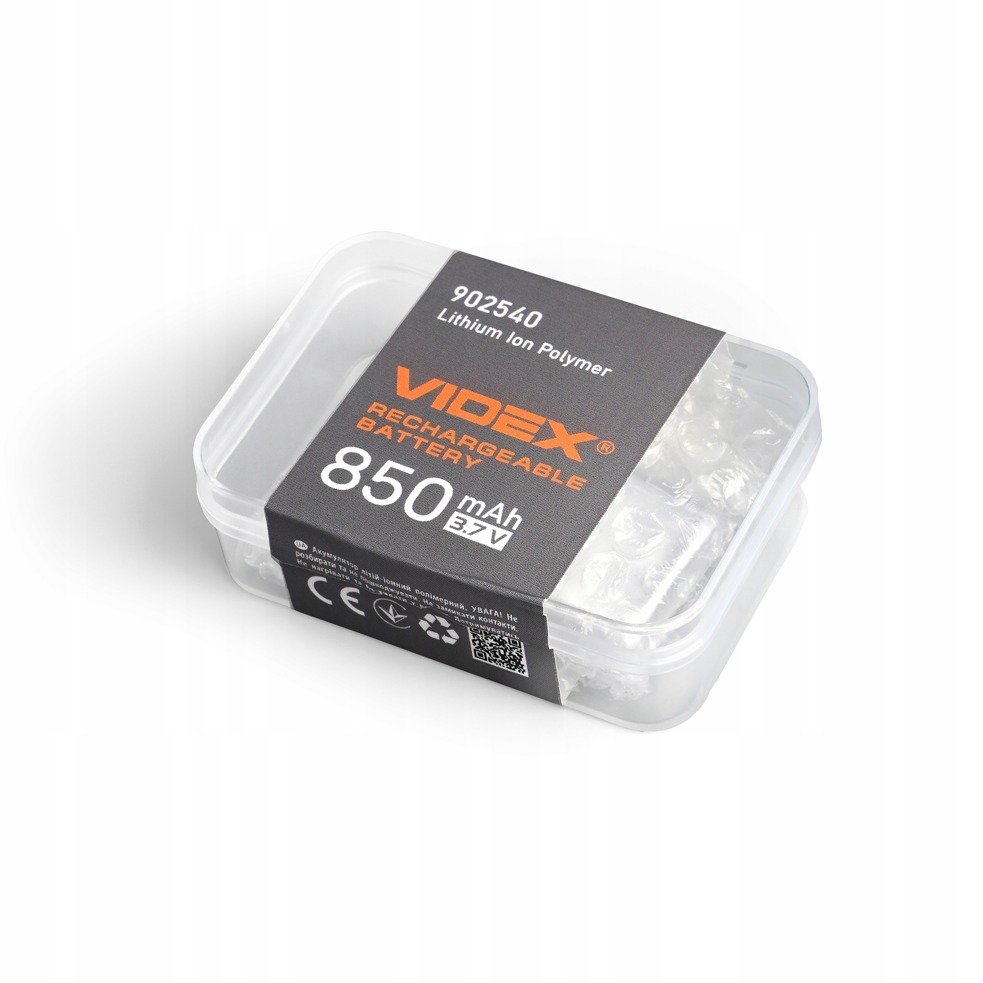Przedstawiamy nowoczesny akumulator litowo-polimerowy marki VIDEX, model VLF-B902540-85, o pojemności 850 mAh i napięciu nominalnym 3,7 V.