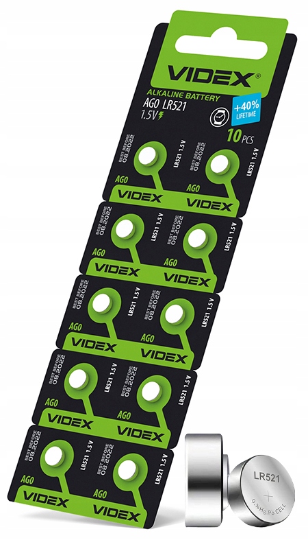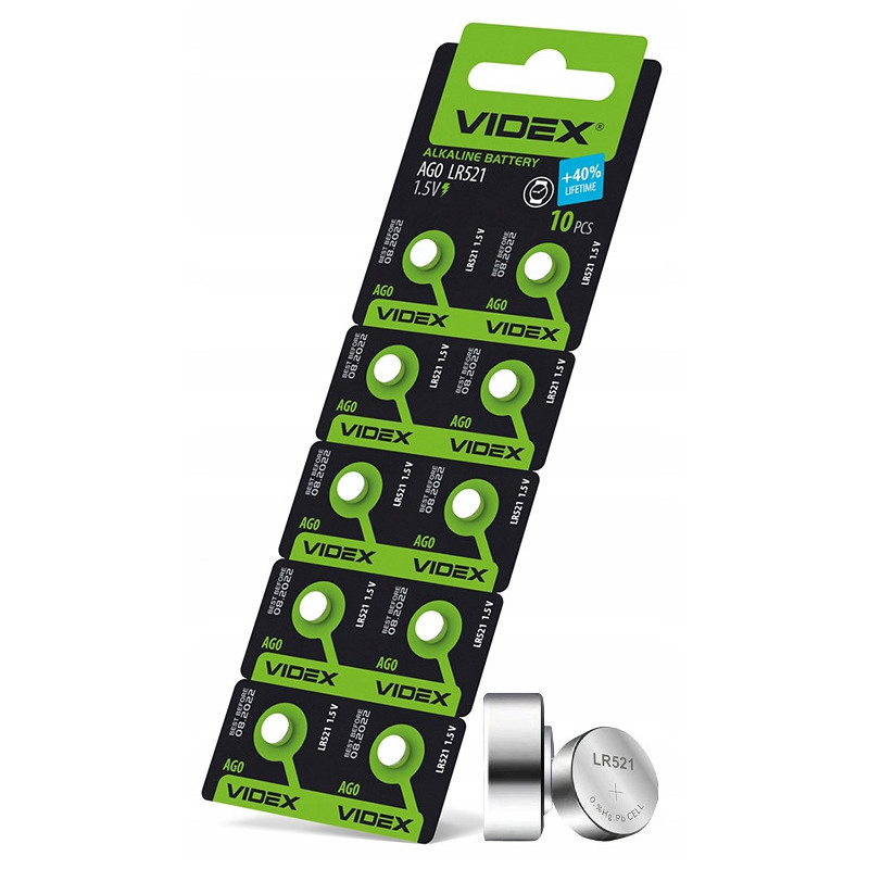 ? W komplecie znajduje się 10 sztuk baterii VIDEX AG0/LR521.