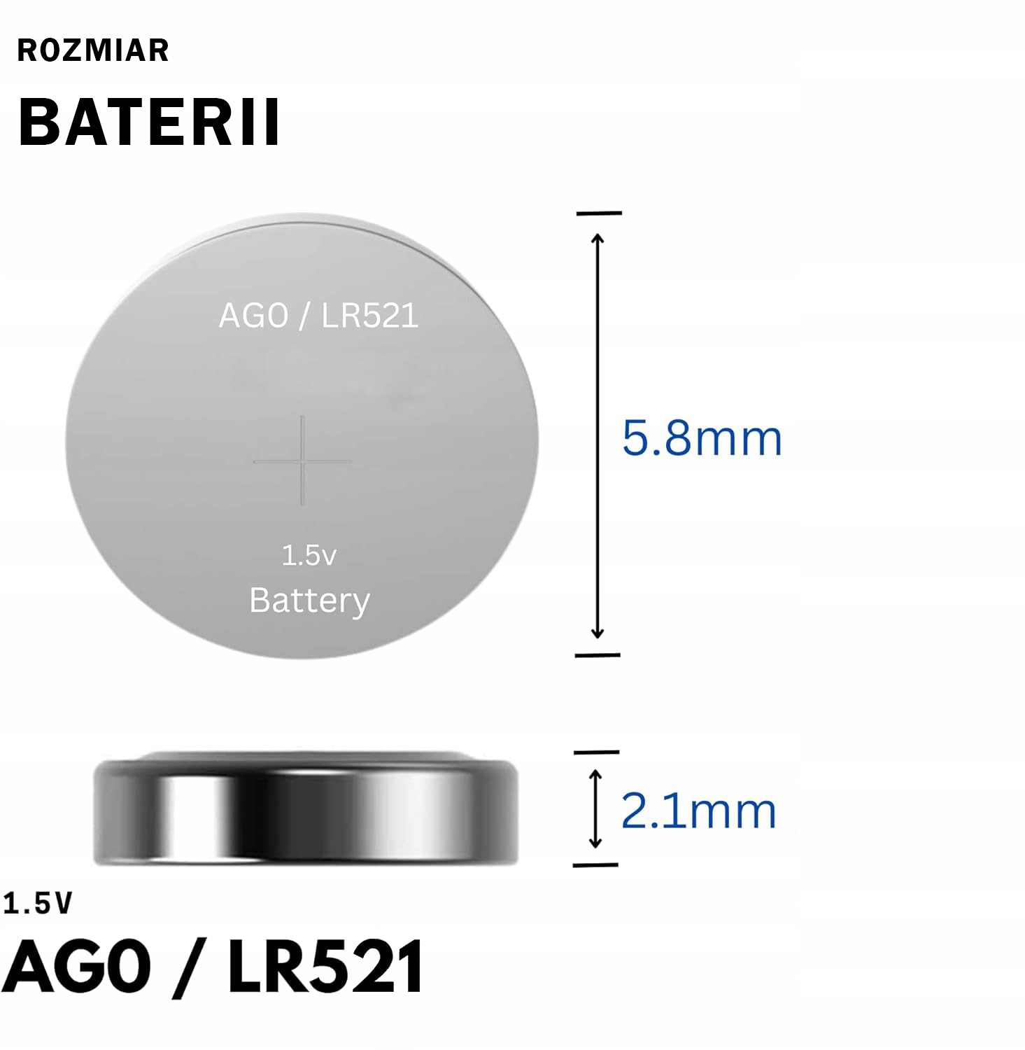 ✅ Typ baterii: AG0 / LR521 / LR63 / 379A / L521 / LR521SW