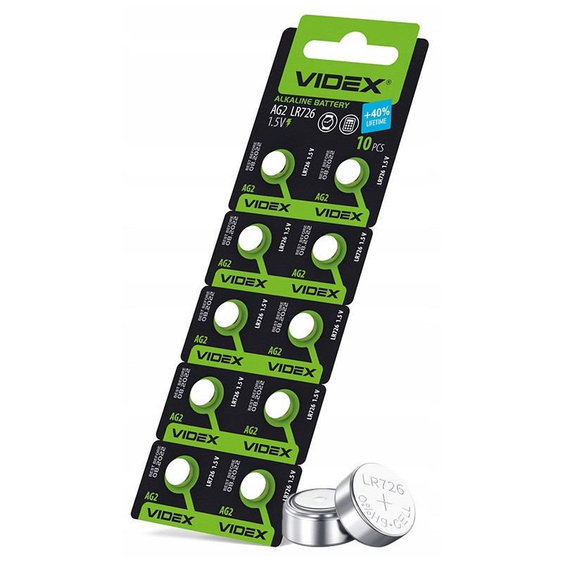 Zestaw 10 sztuk baterii alkalicznych VIDEX AG2 / LR726 / L726 1,5V to doskonałe rozwiązanie dla małych urządzeń elektronicznych wymagających niezawodnego i długotrwałego źródła energii.