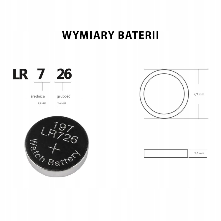 ✅ Typ baterii: AG2 / LR726 / L726 / 396A / G2 / LR59