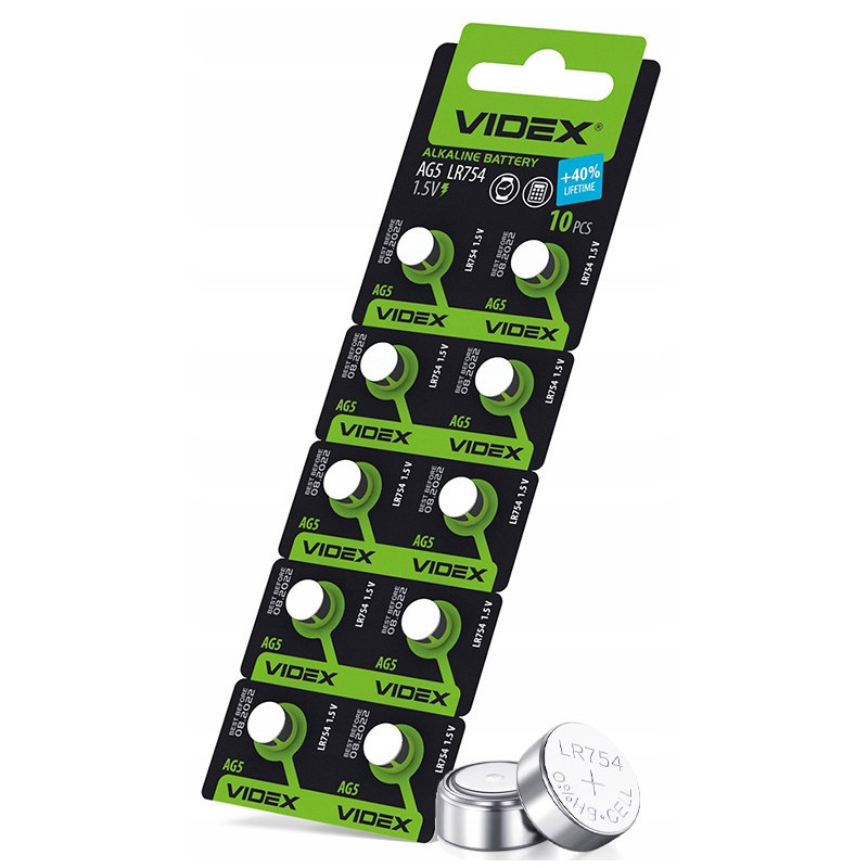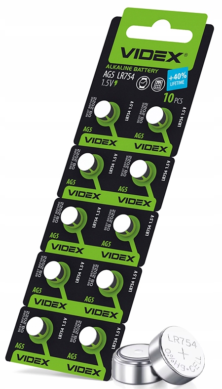 ? W zestawie znajduje się 10 sztuk baterii VIDEX AG5 / LR754.