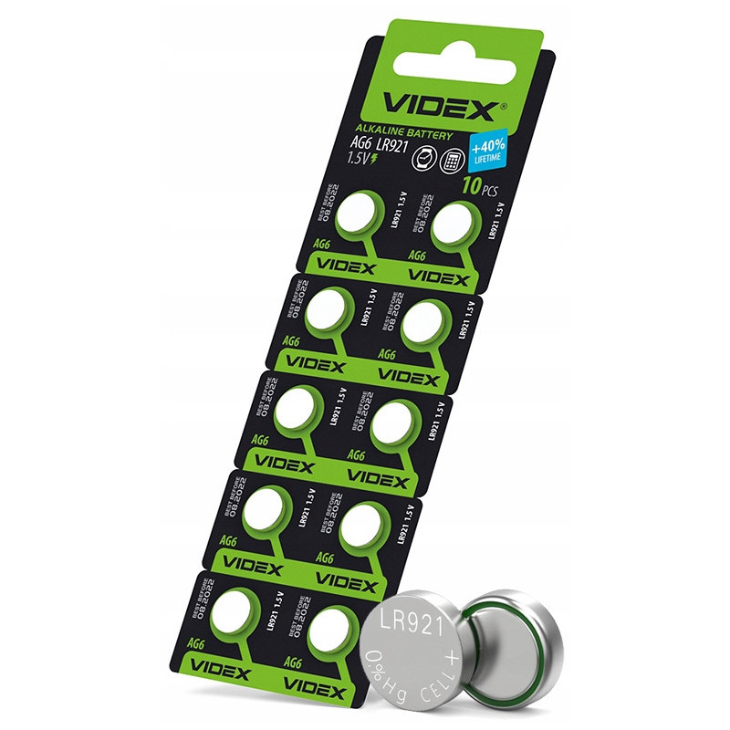 Zestaw 10 sztuk baterii alkalicznych VIDEX AG6 / LR921 / L921 to idealne źródło zasilania dla drobnych urządzeń elektronicznych.