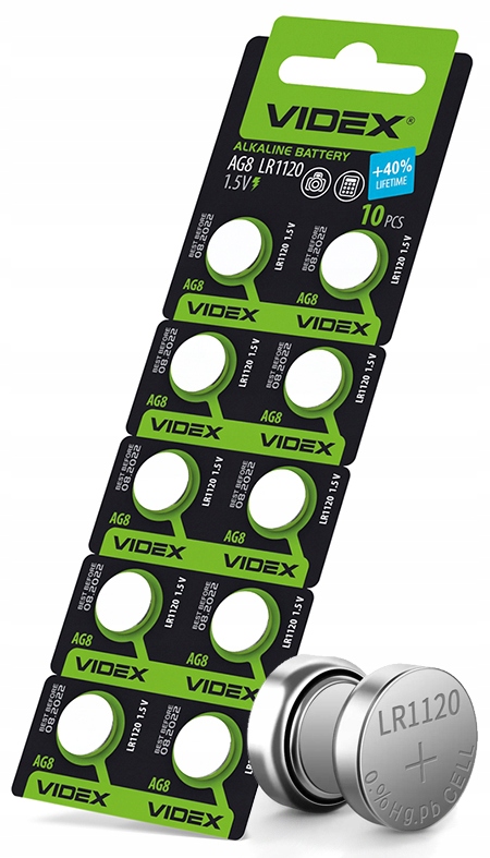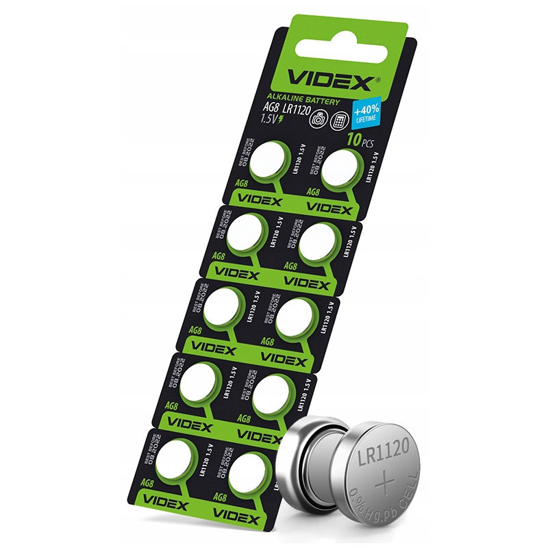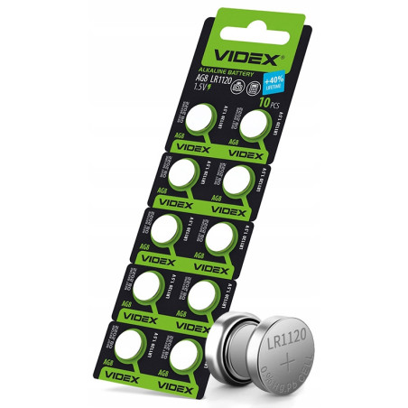 Zestaw 10 sztuk baterii alkalicznych VIDEX AG8 / LR1120 / 1,5V to niezawodne źródło energii stworzone z myślą o urządzeniach wymagających długotrwałego, stabilnego zasilania. Idealne do zegarków, kalkulatorów, pilotów, zabawek, termometrów elektronicznych i urządzeń medycznych.