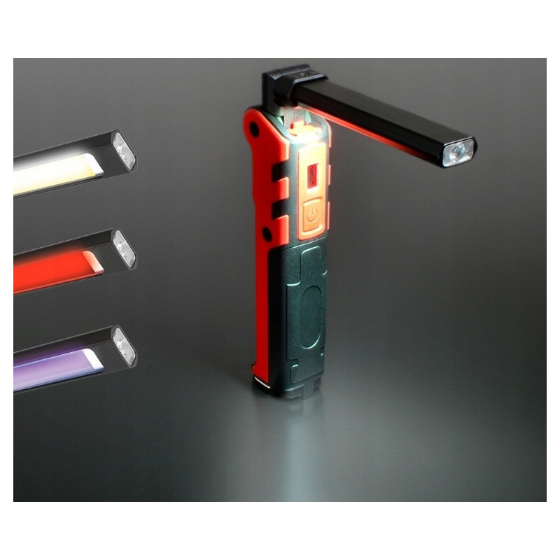 ✔ boczna dioda LED ma trzy rodzaje światła: białe, czerwone i ultrafioletowe do wykrywania cieczy