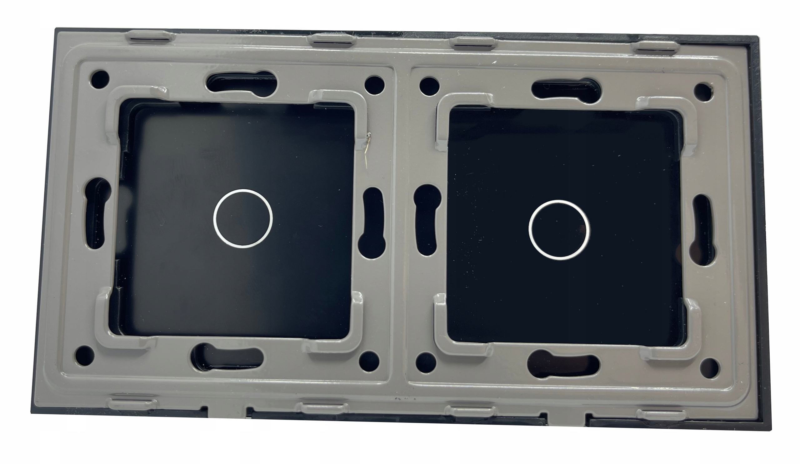 Połączenie designu i wygody daje nam produkt odporny na brud, wilgoć, stuknięcia. Nie odkształca się, ani nie blaknie. Panel szklany łączony jest z wkładem dotykowym w którym umieszczone jest serce urządzenia, montaż przebiega w sposób bardzo prosty, jak w przypadku zwykłego osprzętu (włącznika światła mechanicznego i gniazdka elektrycznego). Sam panel posiada pojedyncze okręgi które są podświetlone - podświetlenie ma za zadanie zwiększenie widoczności - tym samym nie jest ono mocne i nie będzie dla nas uciążliwe.