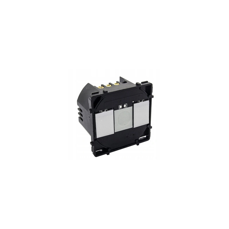 Mechanizm włącznika dotykowego podwójnego schodowego, bez panelu szklanego. Wytrzymały, precyzyjnie wykonany mechanizm. Kompatybilny z panelami szklanymi.