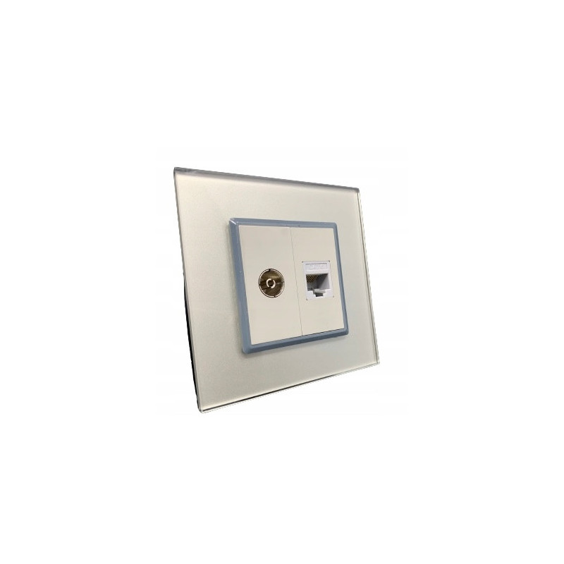Prezentujemy najwyższej jakości gniazdko podwójne z wejściem na pół slotu TV oraz LAN RJ45, szklane z panelem ze szkła hartowanego.