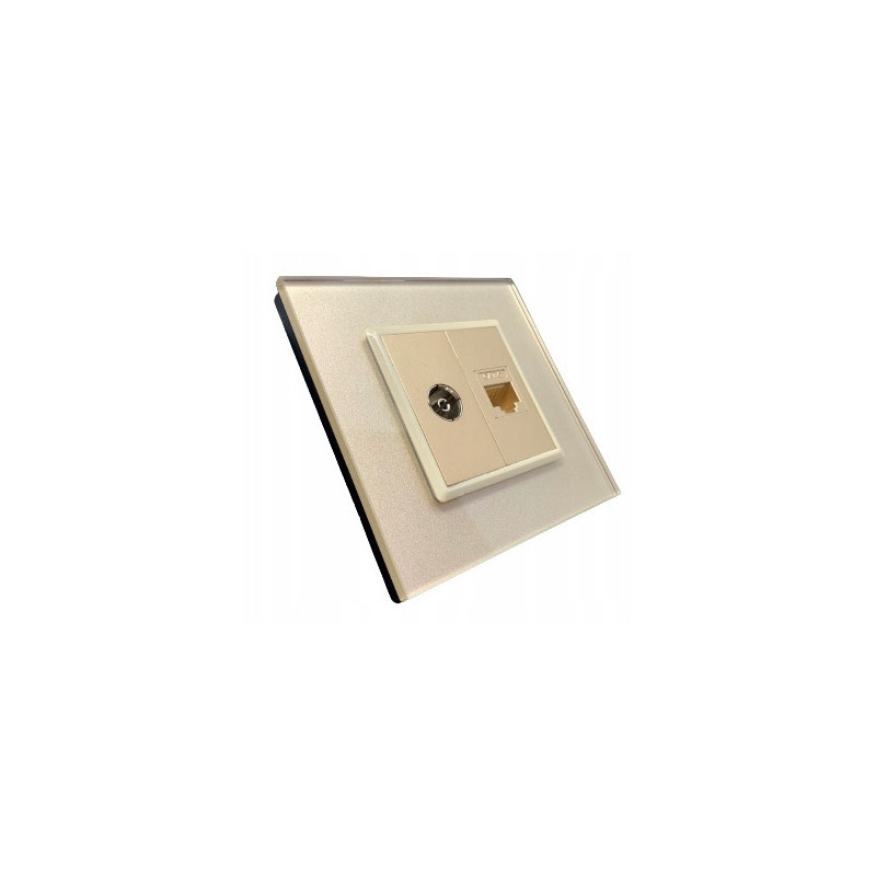 Prezentujemy najwyższej jakości gniazdko podwójne z wejściem na pół slotu TV oraz LAN RJ45, szklane z panelem ze szkła hartowanego.