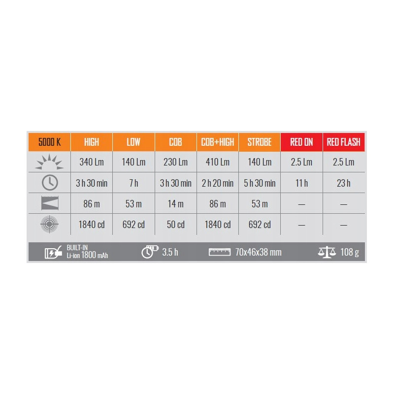 Doskonała, nowoczesna, bardzo wydajna latarka, która będzie świetnym towarzyszem podczas aktywności na świeżym powietrzu. Doskonale zabezpieczona i przystosowana do użytkowania w trudnych i ekstremalnych warunkach. Pasek na głowę wykonany jest z odpornego na ścieranie materiału o miękkiej fakturze, co zapewnia komfort użytkowania.