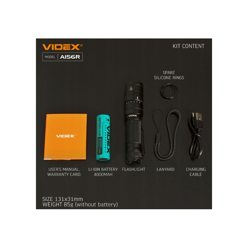 Latarka kompaktowa LED przenośna VIDEX VLF-A156R 1700LM z zasięgiem 210m al