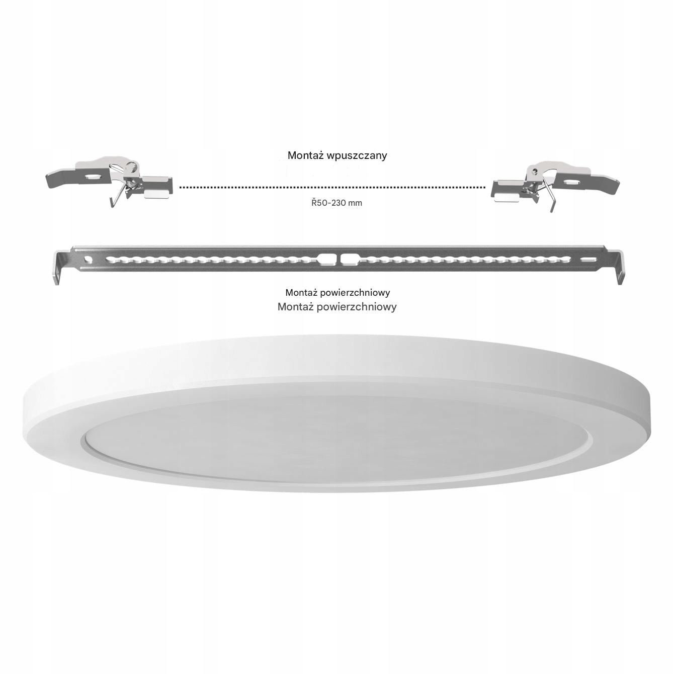 ✅ Moc 24 W • ✅ Regulowana barwa światła – 3000 K / 4000 K / 6500 K • ✅ Wysoka jasność (~2460 lm) • ✅ Montaż natynkowy lub wpuszczany • ✅ Obudowa biała – uniwersalny wybór