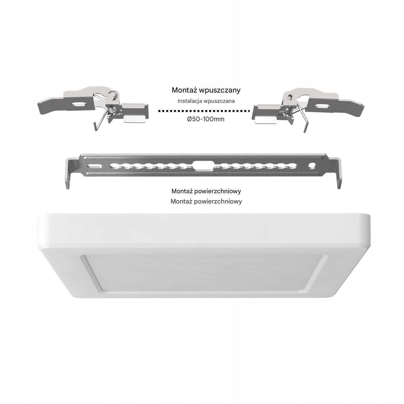 ✅ Moc 12 W • ✅ Regulowana temperatura barwowa 3000/4000/6500 K • ✅ Strumień świetlny 1170 lm • ✅ Biała obudowa • ✅ Montaż natynkowy lub wpuszczany
