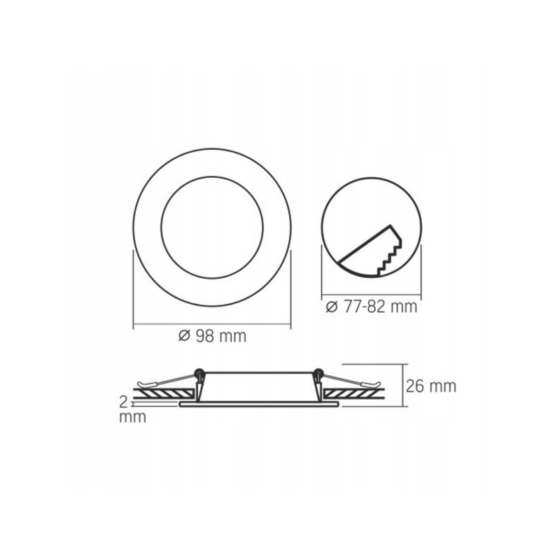 • Rozmiar otworu montażowego: Ø77-82 mm,