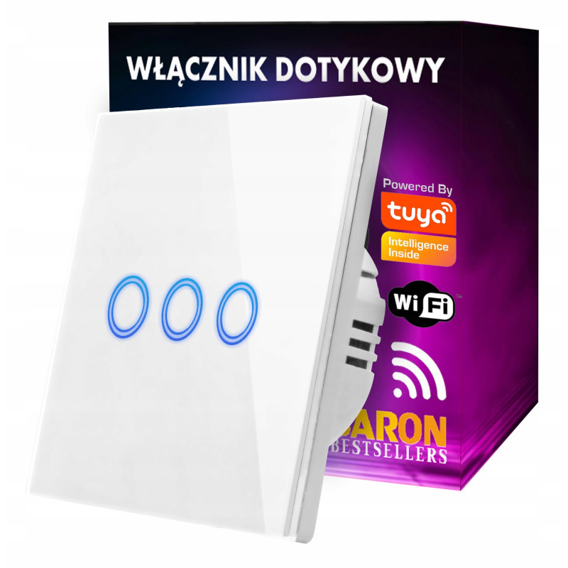 Włącznik posiada opcję sterowania przez aplikację Tuya Smart, dostępną dla systemu Android, iOS bądź Amazon Alexa.