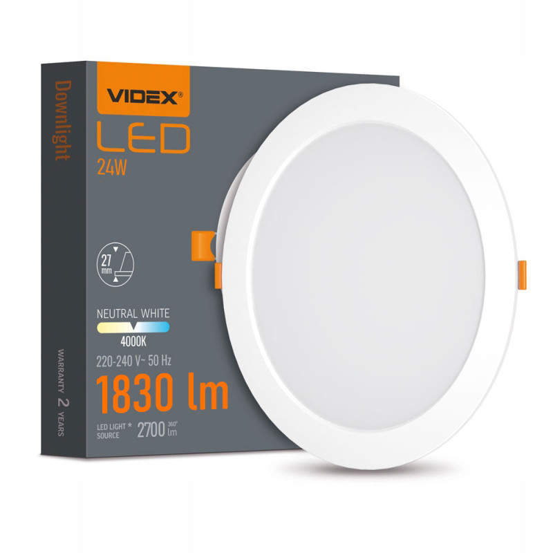 LED Oprawa typu Downlight P/T VIDEX-DOWNLIGHT-LED-DLBR-244-24W-NW