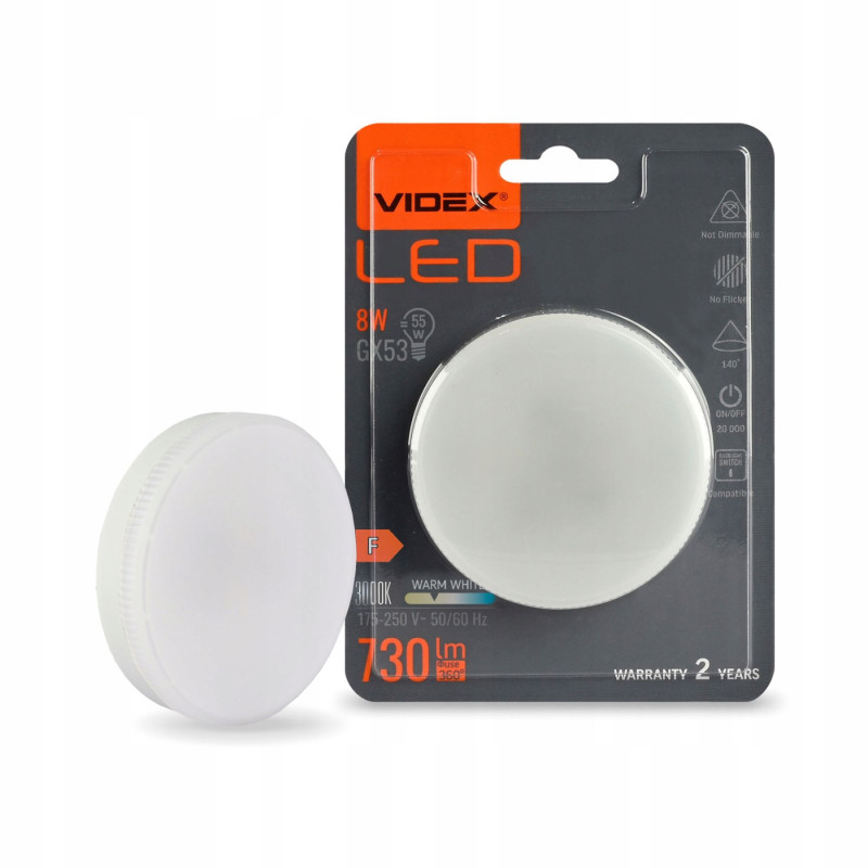 Przedstawiamy energooszczędną żarówkę LED VIDEX GX53 o mocy 8W, emitującą ciepłe białe światło o temperaturze barwowej 3000K.