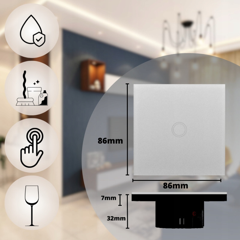 Elegancki i wytrzymały włącznik/ wyłącznik, sprawdzi się w każdym pomieszczeniu, zarówno w kuchni, łazience jak i w przedpokoju czy sypialni.