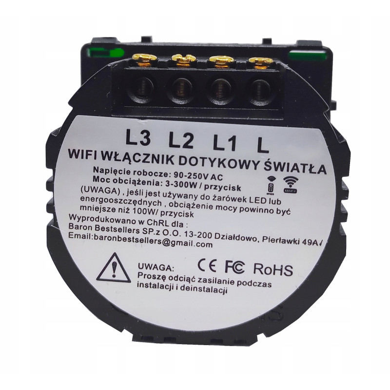 Mechanizm włącznika dotykowego potrójnego wi-fi, bez panelu szklanego. Wytrzymały, precyzyjnie wykonany mechanizm. Kompatybilny z panelami szklanymi.