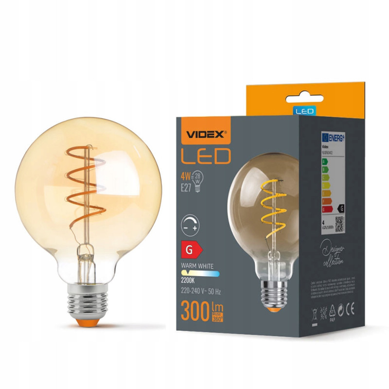 Żarówka LED Filament 4W E27 G95 300lm bursztyn spiralna ciepła VIDEX